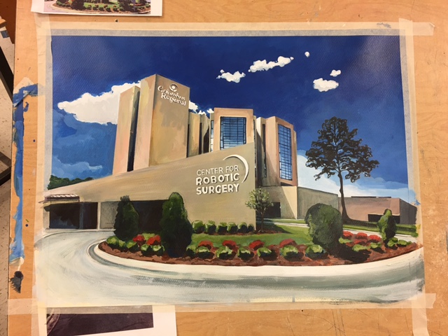 Working on a piece for the hospital to celebrate its newest distinction, “Center for Robotic Surgery”.