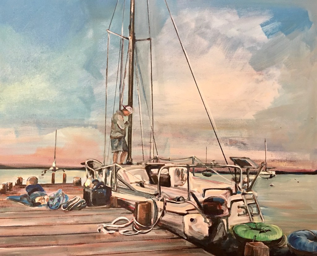 This pandemic has taught me to appreciate moments, especially those when everything seems to fall in place. This was one of those moments. We had just returned from a day of sailing at Lake Waccamaw. The kids were playing on the deck and we were hanging out on the porch at the sailing club. There was a calm that comes after a full day on the water and the lake seemed to follow suit. I took a photo, several photos actually, and then a few weeks later picked one out as a reference.